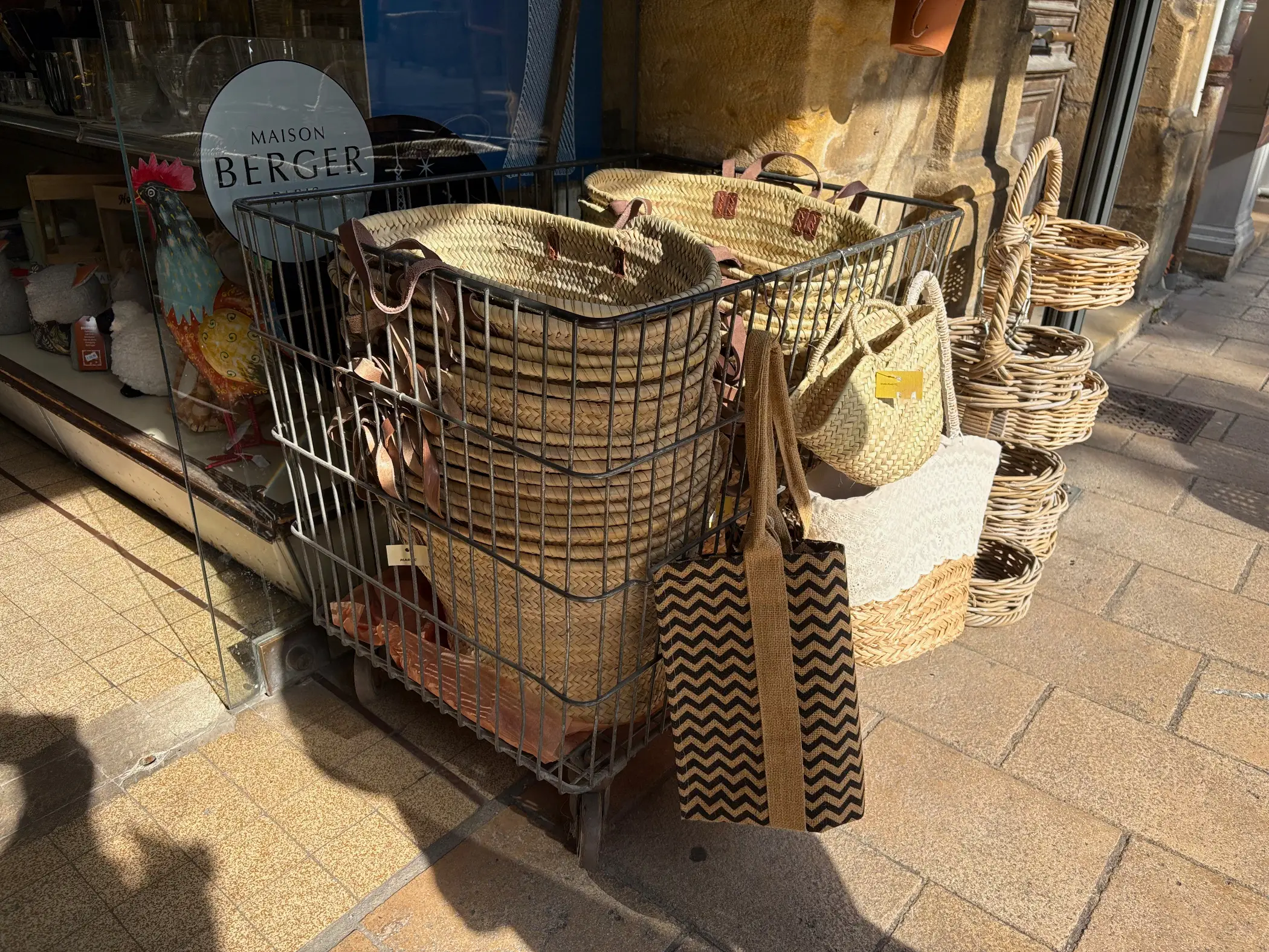 On our 2025 summer trip to Dordogne, France, it was clear that baskets are a common part of daily life. In the village markets and along the sunlit streets of Sarlat-la-Canéda, Corinne and I saw them stacked high on tables, tucked beneath counters, and woven into daily commerce.