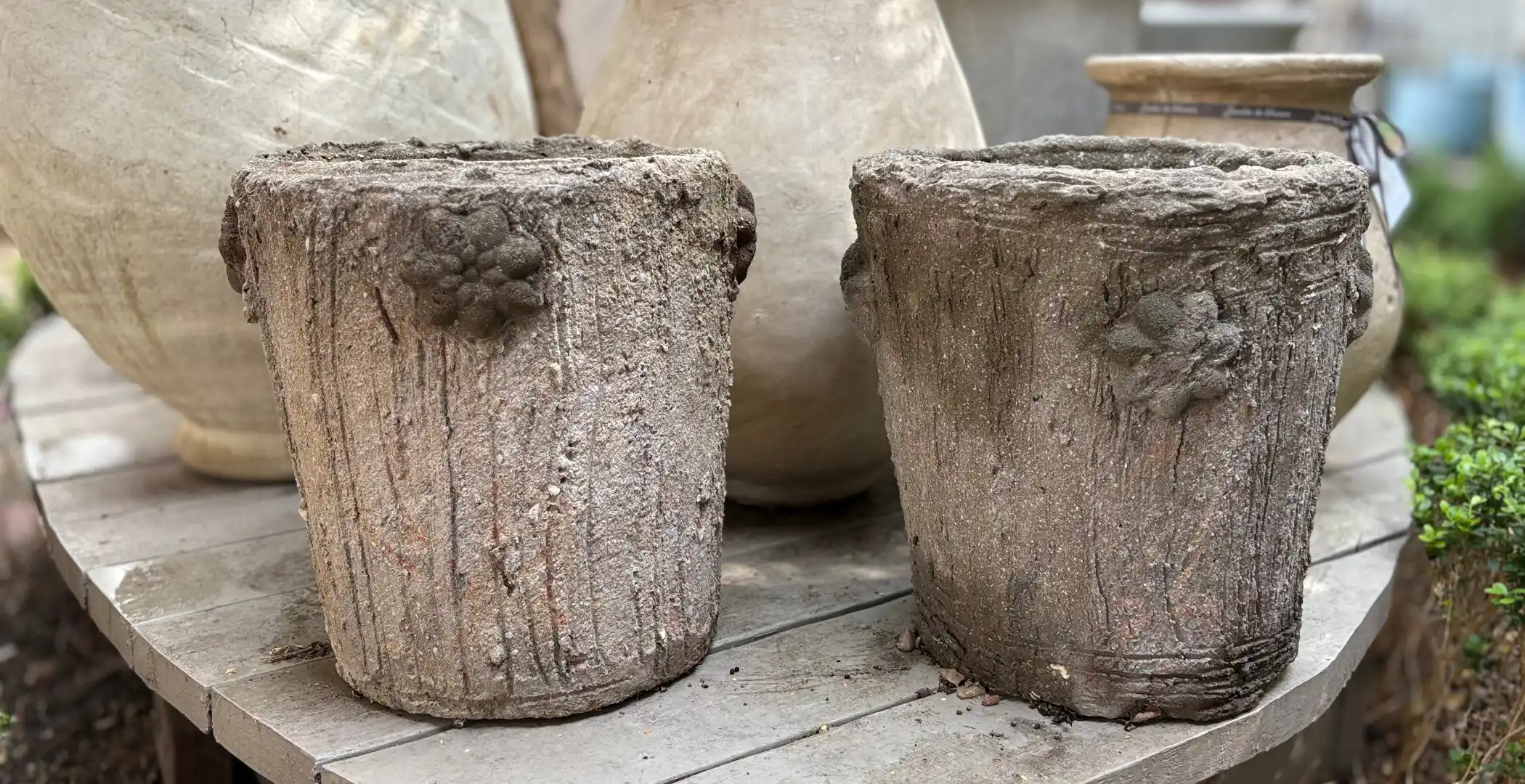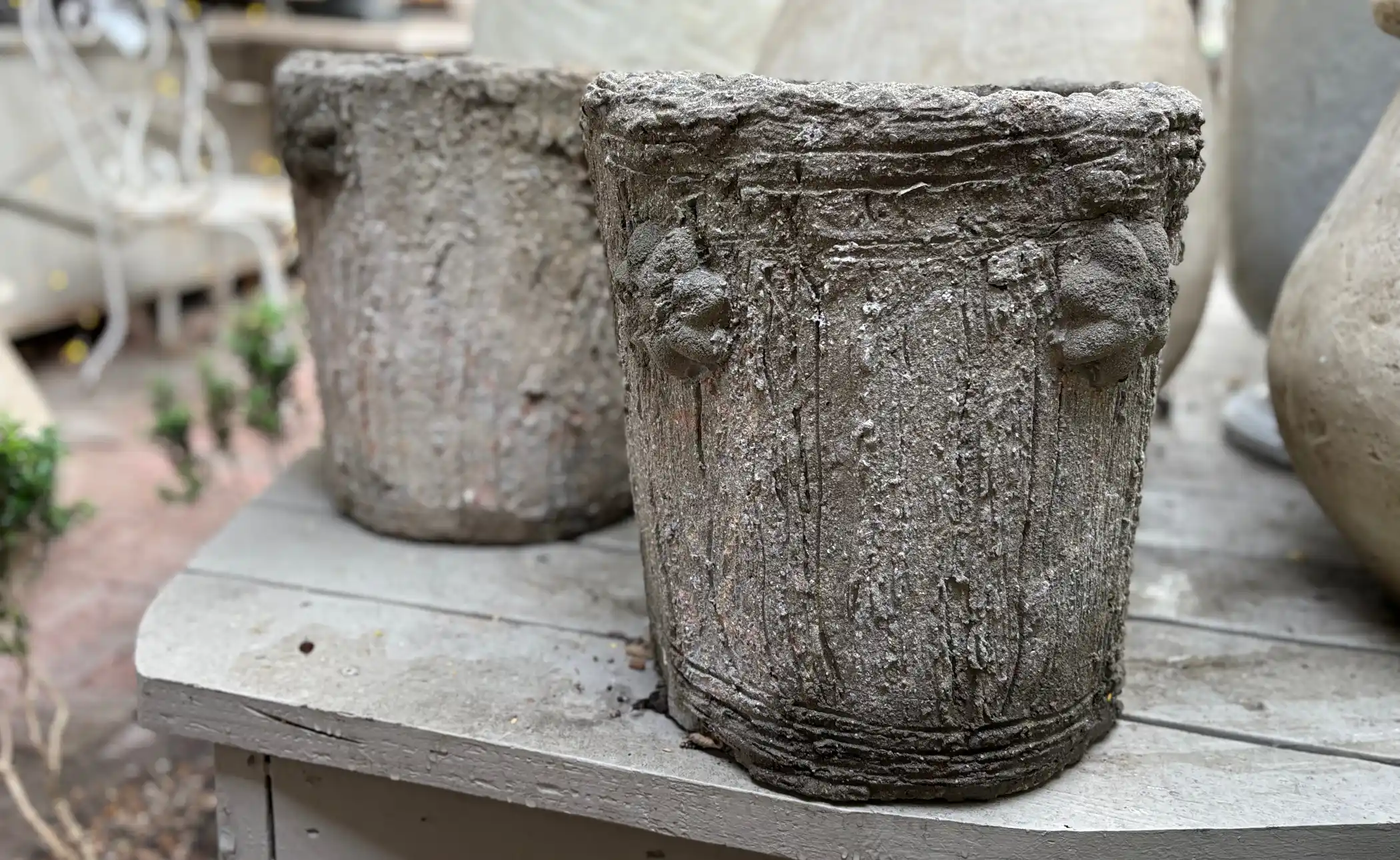 I’m obsessed with these antique stump planters we have from the 1880s.