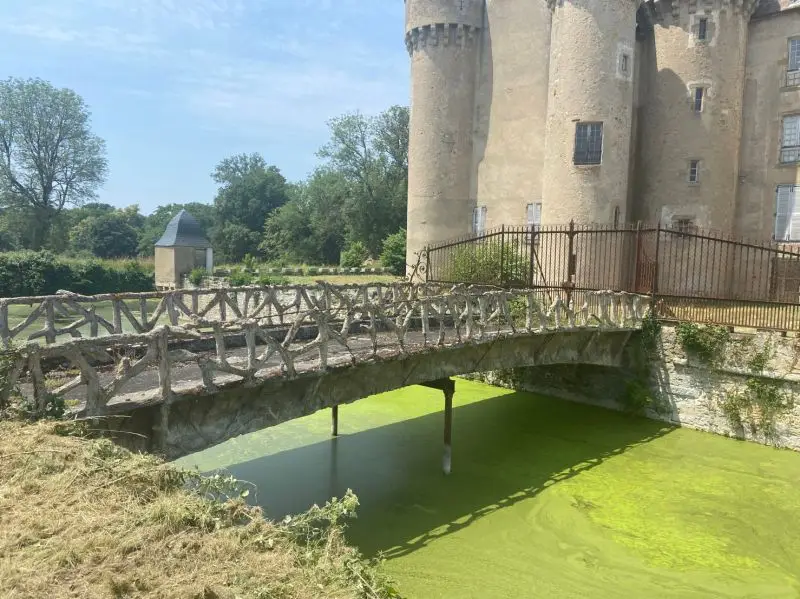 In 1875, Monsieur Monier built the first reinforced-concrete bridge using his patents. The bridge, spanning the moat of the Chateau de Chazelet, stands to this day, and Monsieur Monier designed its columns and railings in the classic faux bois style of tree trunks and branches, which was very en vogue at the time.