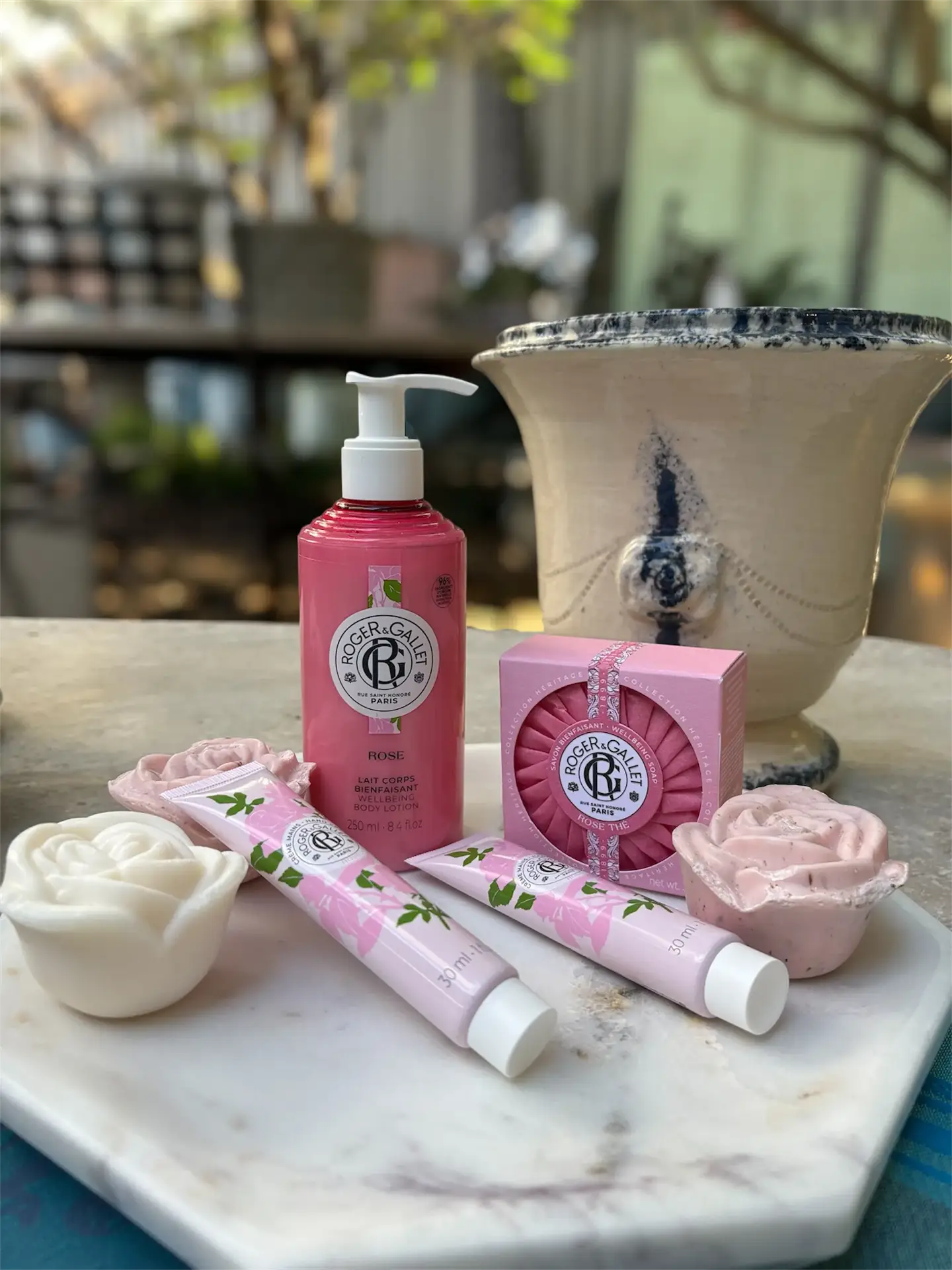 A timeless Valentine’s pairing featuring Roger & Gallet Rose Thé body care, known for its delicate floral fragrance and refined Parisian heritage. Paired with sculpted flower soaps by La Lavande, this selection balances romance and restraint—beautifully scented pieces designed for daily rituals and quiet indulgence.